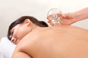 Warmed cups are put onto the skin for suction, drawing fluid into the area. This causes blood vessels to expand and break open, gathering blood in the area of the cup as a healing process for your body.